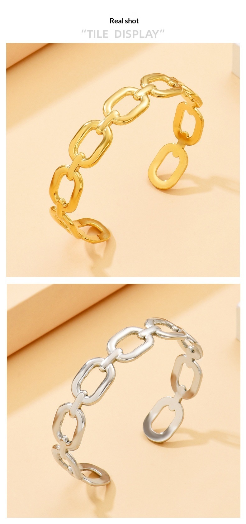 Minimalist Hollow Square Chain Link Stainless Steel Bracelet