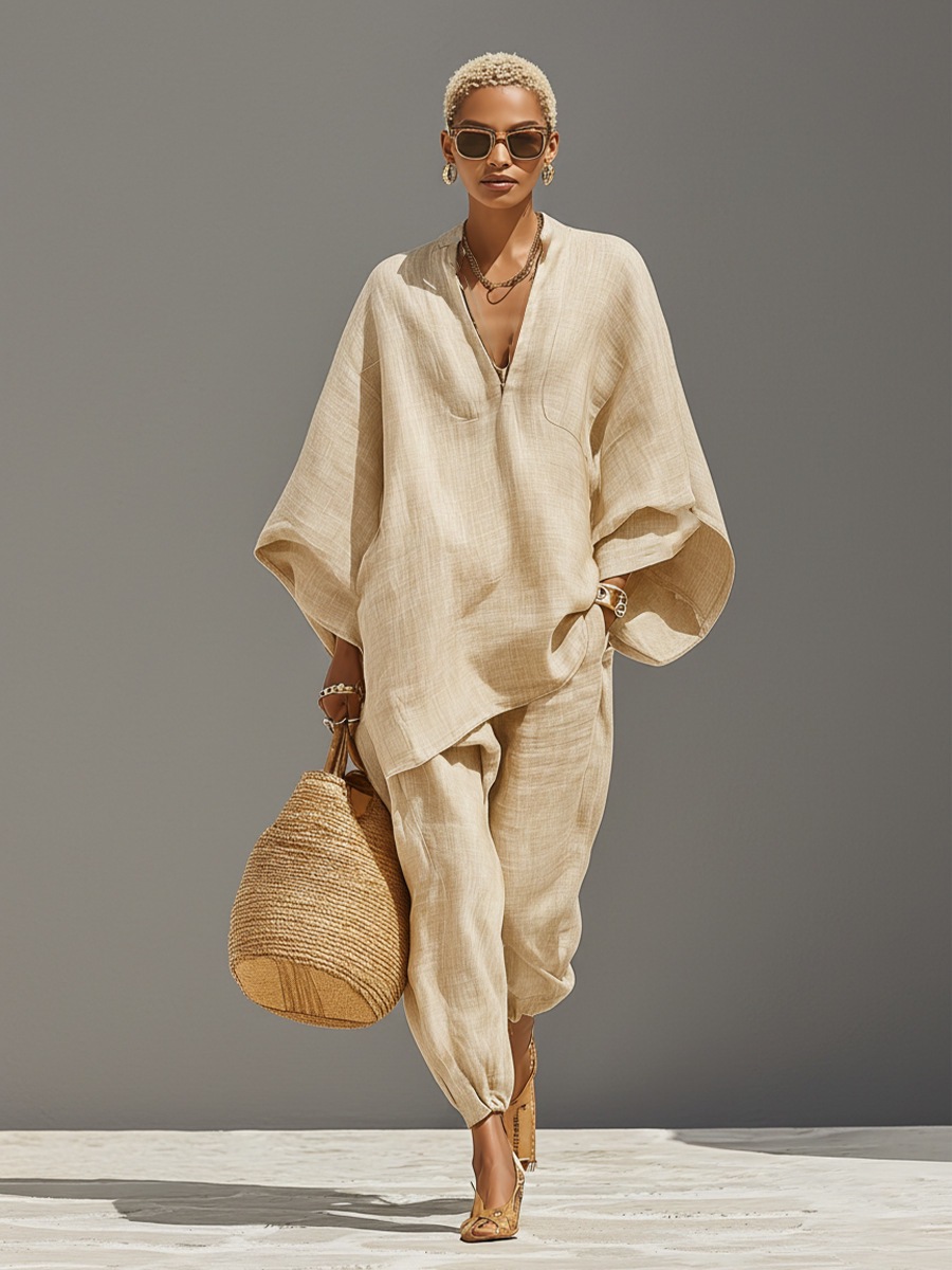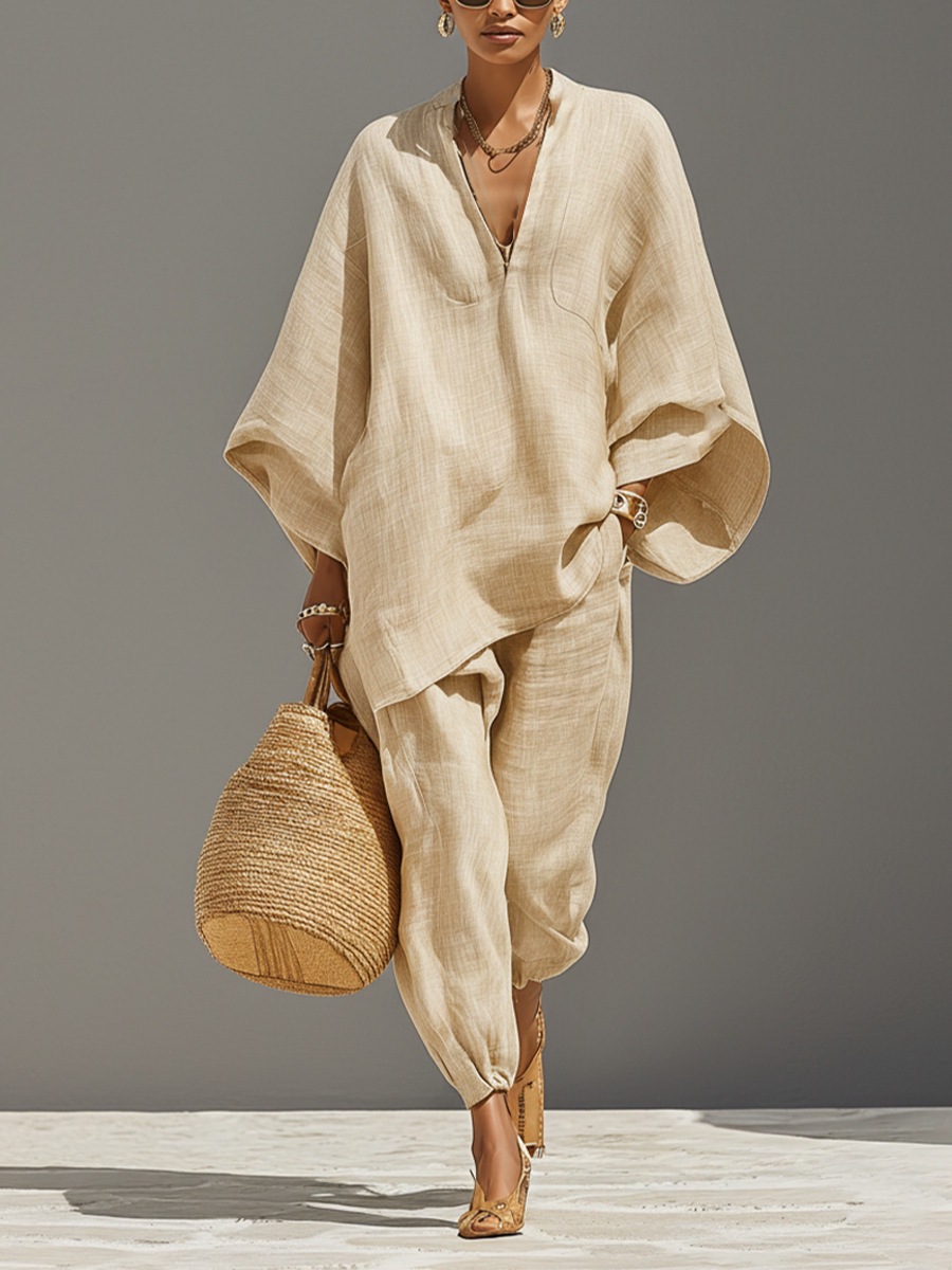 Completo Camicia e Pantaloni Casual Tinta Unita da Donna